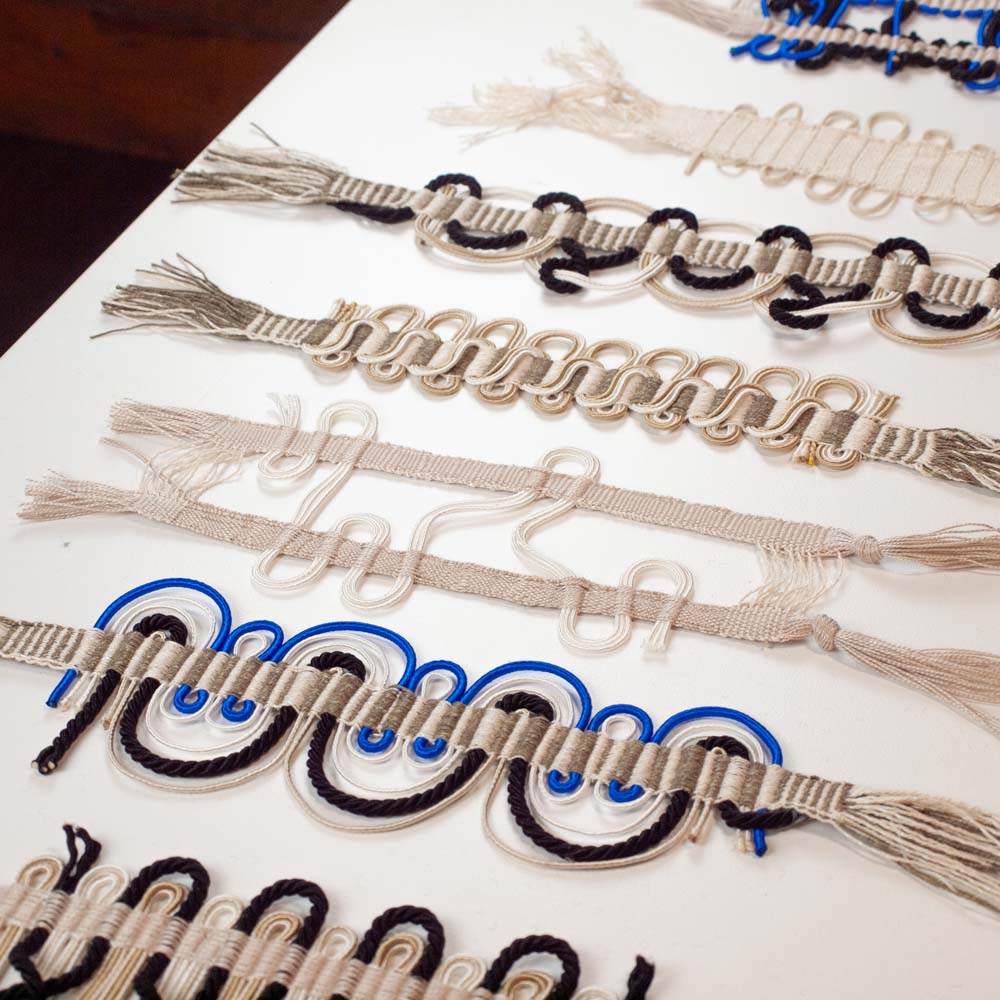 Passementerie ist das Handwerk der Herstellung dekorativer Verzierungen – Borten, Fransen, Quasten und Kordeln – die seit Jahrhunderten Kleidung und Innenräume verschönern. Heute gilt es als vom Aussterben bedrohtes Handwerk, was es umso bedeutungsvoller macht, es auf zeitgemäße Weise wieder aufzugreifen. In diesem Kurs beschäftigen wir uns mit handgewebter Passementerie unter Verwendung von Webstühlen. Sie lernen, den Webstuhl einzurichten und eine Vielzahl von Designs zu weben, wobei Sie sich an historischen Mustern orientieren und gleichzeitig Ihre eigenen Motive und Variationen entwickeln. Wir werden uns auch mit Techniken zur Herstellung von Kordeln befassen und handgedrehte Kordeln zum Weben herstellen. Es stehen verschiedene Materialien zum Experimentieren zur Verfügung, darunter Textilreste von lokalen Unternehmen. Am Ende des Workshops werden alle Teilnehmenden eine kleine Sammlung von Posamentenmustern sowie eine Grundlage an Techniken und Ideen entwickelt haben, die in zukünftige Arbeiten in den Bereichen Mode, Innenausstattung oder Textilkunst umgesetzt werden können.